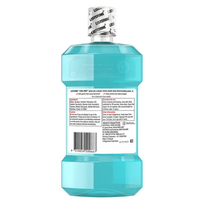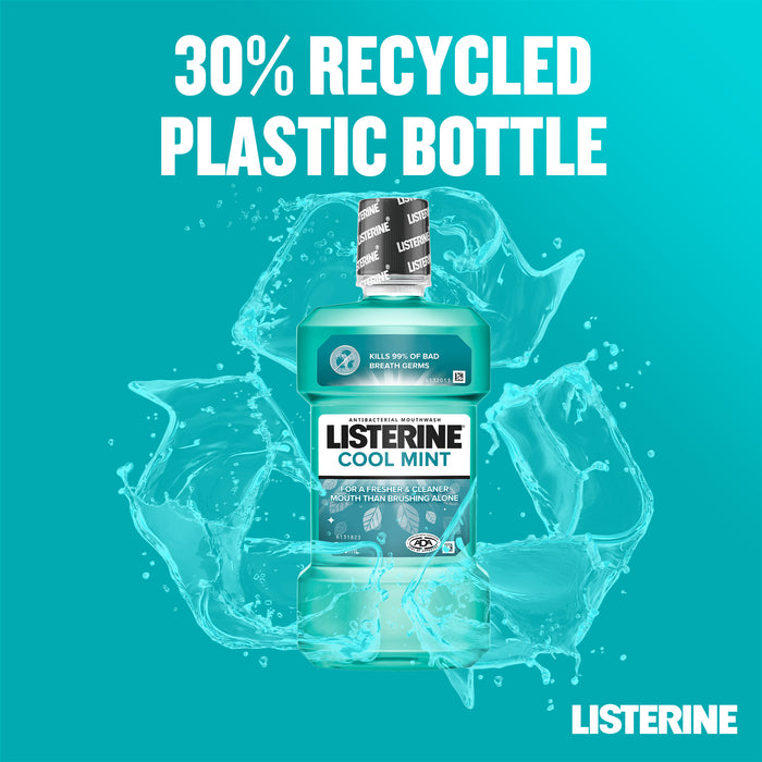 Protect your mouth from germs and get fresh breath with Listerine Cool Mint Antibacterial Mouthwash. It kills 99% of bad breath germs and gives you a deeper whole mouth clean than brushing alone.