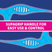 The Piksters SupaGRIP is an advanced flosser pick designed with a superior floss, handle, and toothpick. Piksters SupaGRIP contains the stronger and more durable monofilament PTFE. The flosser features a ribbed grip for improved control, and a big and long handle to easily reach your back teeth. The arms have a wide design to allow for easy cleaning between large molars.